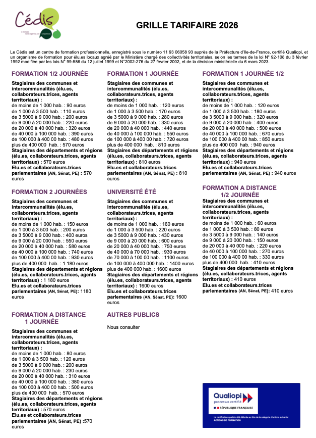 La grille tarifaire applicable est la suivante, sauf formation spécifique : dans ce cas de figure, contactez-nous.